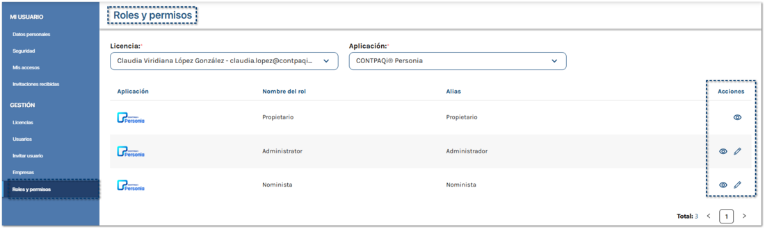 ![]() Selecciona el menú Roles y permisos, de la barra lateral derecha.