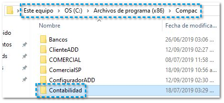 Ingresa a la siguiente ruta C:\Program Files (x86)\Compac en tu equipo, y selecciona la carpeta de Contabilidad.