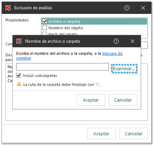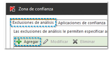Ingresa a la pestaña Exclusiones de análisis y haz clic en el botón Agregar