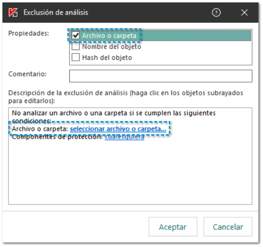 Habilita la opción Archivo o Carpeta y haz clic en la opción seleccionar archivo o carpeta...