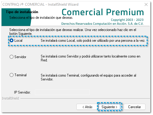 CONTPAQi® Comercial Premium no puede tener un tipo de instalación distinto a CONTPAQi® Herramientas Complementarias.
