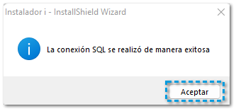 Se mostrará el mensaje de confirmación indicando la conexión exitosa a la instancia de SQL.