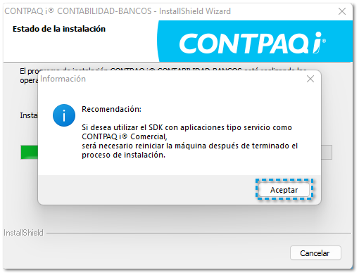 Durante el avance indicará la instalación de CONTPAQi® Bancos y CONTPAQi® Contabilidad.