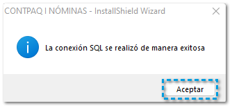 Se mostrará el mensaje de confirmación indicando la conexión exitosa a la instancia de SQL.