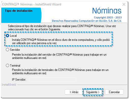 A continuación, te mostraremos los pasos para realizar la instalación del sistema, para este ejemplo realizaremos la instalación Local.