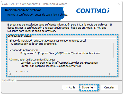 Enseguida continuará con la instalación de CONTPAQi®Administrador de Documentos Digitales
