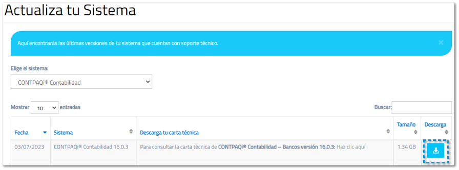 Identifica la versión que deseas descargar, y haz clic en el botónpara comenzar la descarga.