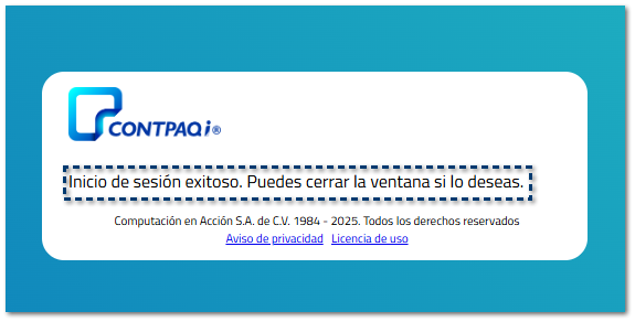 Se mostrará el mensaje de inicio de sesión exitosa.