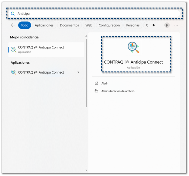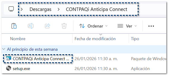Identifica el archivo CONTPAQi Anticipa Connect.exe y haz doble clic sobre el.