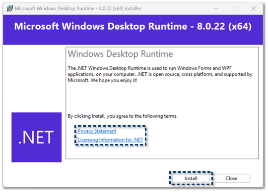 En la siguiente ventana puedes consultar el aviso de privacidad y los términos de la licencia y condiciones; posteriormente acepta los términos y condiciones y haz clic en Install.