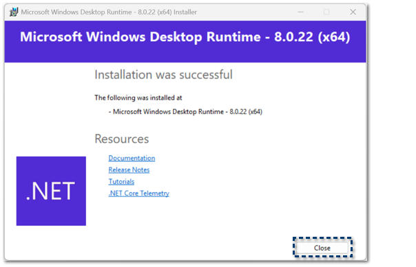 Finalmente haz clic en Close.