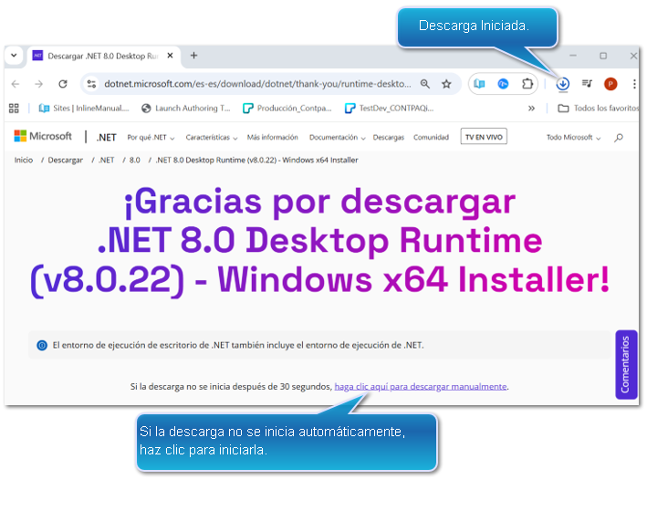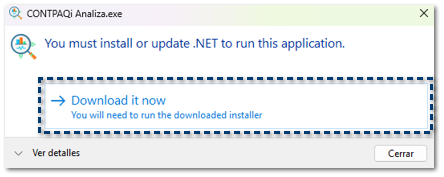 Al ingresar por primera vez a la herramienta de conexión con CONTPAQi Anticipa Connect el sistema validará si se tiene instalado Microsoft ASP.NET Core 8.0.22 o superior, y en caso de no tenerlo debes realizar lo siguiente: