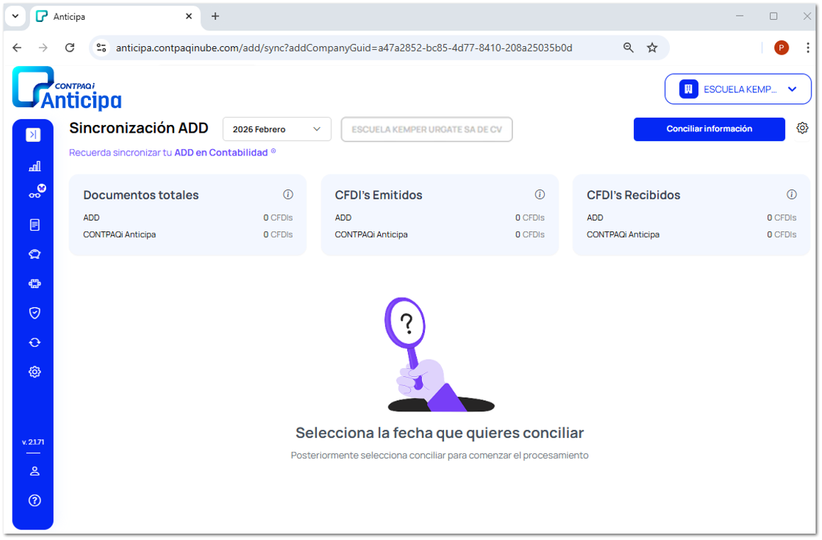 La empresa de CONTPAQi Anticipa ha sido vinculadacon el ADD de la empresa de CONTPAQi Contabilidad®, por lo que ahora puedes comenzar a conciliar y sincronizar la información.