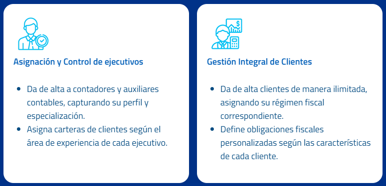 En nuestro portal encontrarás toda la información sobre CONTPAQi Despachos®, la solución en la nube diseñada para contadores independientes y despachos contables con amplias carteras de clientes. Con herramientas avanzadas para asignar ejecutivos, gestionar obligaciones fiscales, controlar documentación y monitorear el cumplimiento de actividades, este sistema permite brindar un servicio personalizado, eficiente y alineado a las necesidades fiscales de cada cliente.