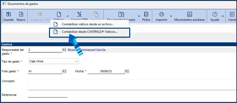 Para contabilizar gastos asociando los documentos generados en CONTPAQi Viáticos® realiza lo siguiente: