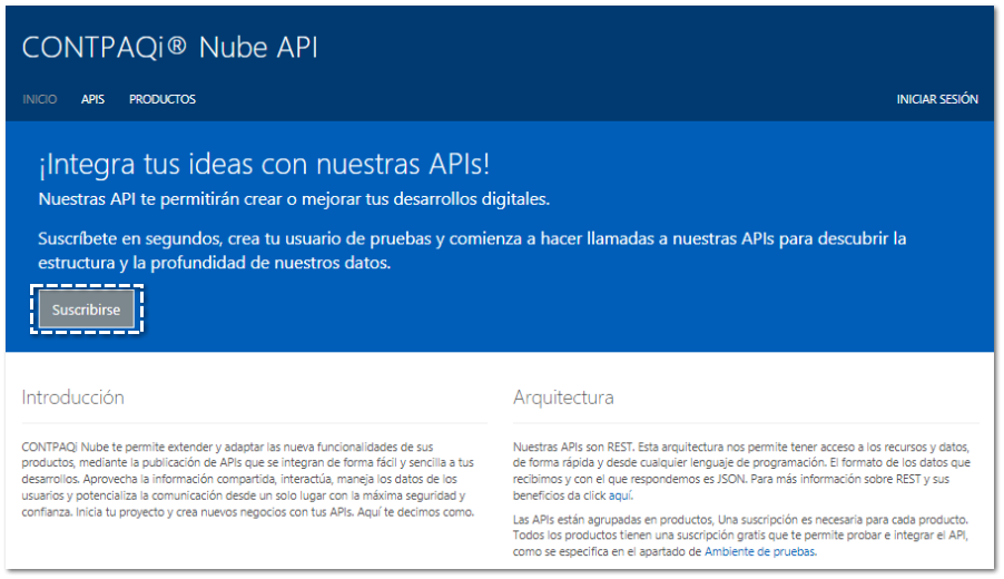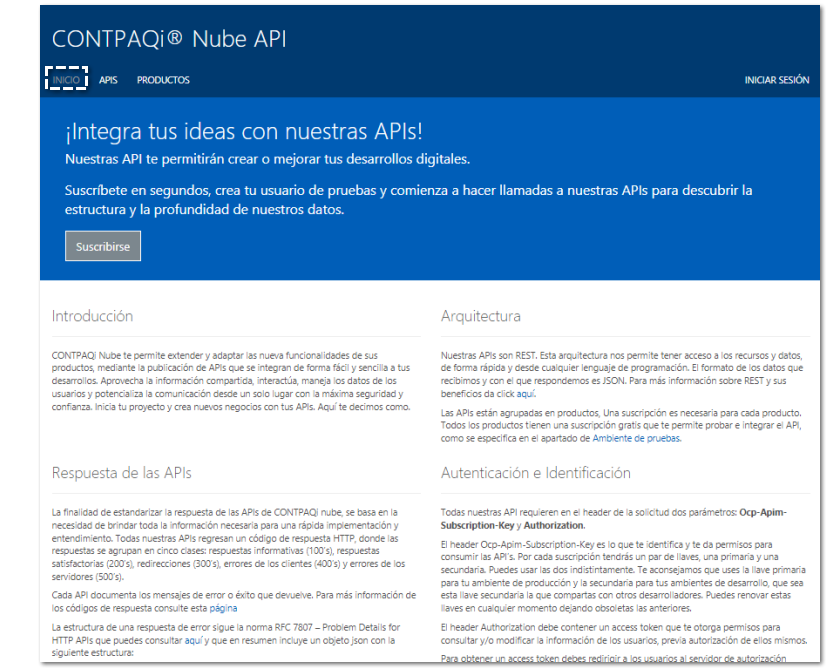 Si ya tienes tu cuenta CONTPAQi®Nube, no es necesario registrarte nuevamente, podrás utilizarla para iniciar sesión en el portal desarrolladores, así como para la adquisición y consumo de las APIs.