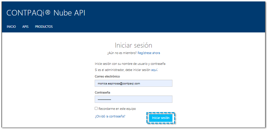 , podrás iniciar sesión en el portal para acceder a la lista de APIs y su documentación. Para ello realiza lo siguiente:
