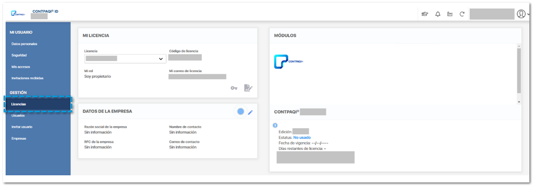 el portal no trae la sección de Mi Licencia CONTPAQi // Cambiar imagen